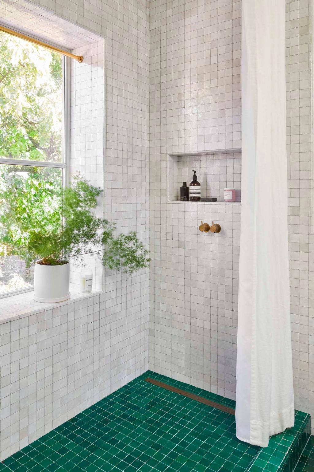 Mimar Frederick Tang, "Bobby ve Rose, aydınlık ve havadar, açık ve modern bir his uyandırmak istediler, ancak yine de bu yüzyılın başındaki şehir evinin tarihi cazibesini korudular," diye açıklıyor. Yeşil fayans ve taş banyoya stratejik bir tavan penceresi de eklendiğinde, doğal ışık içeri sızabiliyor.