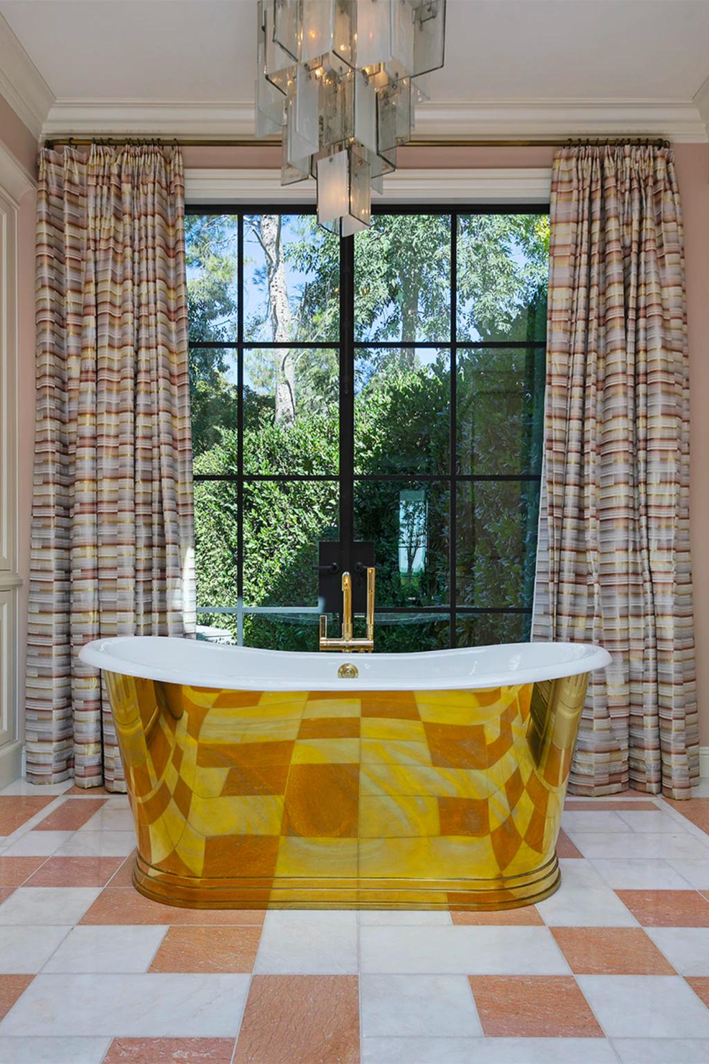 17 banyolu bir evde, altın rengi küvetiyle göz kamaştıran bu banyo favorimiz oldu.