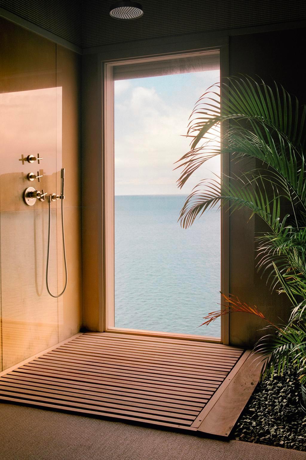 Vücuda düzgünce oturan yapılandırılmamış terziliğiyle ünlü Armani, bir evde resmiyetten uzaklaşıp zarif, kolay ve rahat bir sadelik sunan ortamlar yaratıyor. Banyoda bile manzara merkezden ve dışarıdan. Duş alırken yanınızdan kimsenin geçmediğinden emin olmak isteyebilirsiniz.