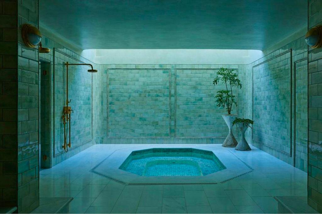 Tasarımcı Robin Standefer, "Bu, beklenmedik bir şekilde Sanat ve El Sanatları havası taşıyan bu güzel soluk yeşil fayanslarla kaplanmış eski bir hamam gibi. Normalde bir arada görmediğiniz şeyler arasındaki gerilimi ve voltajı araştırmayı seviyoruz" diyor.