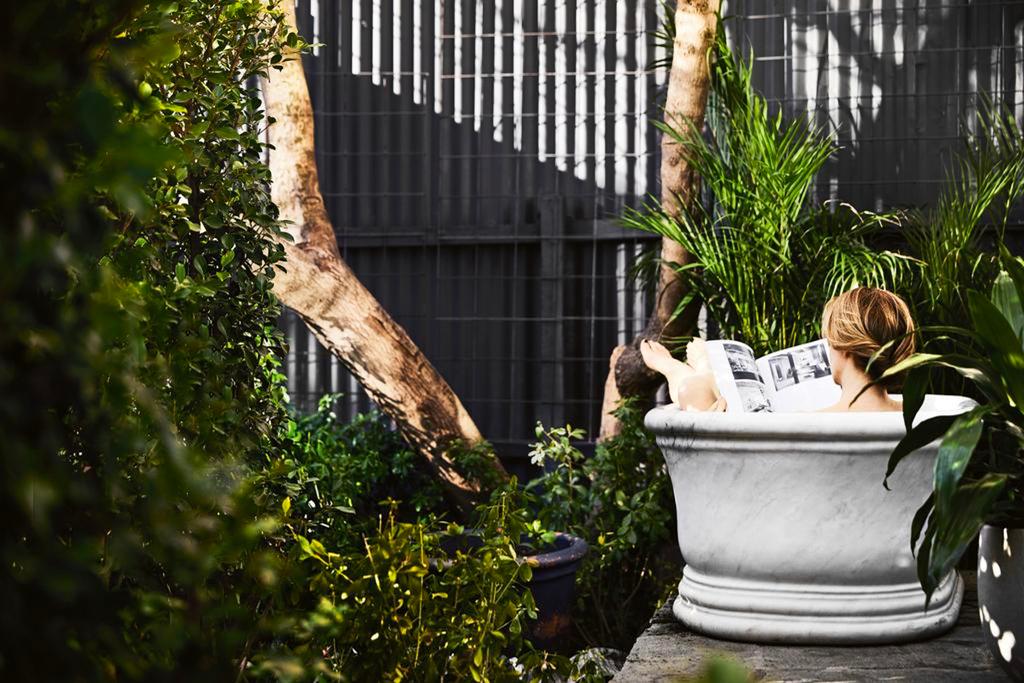 Tamam, bu hile olabilir ama bu küveti dahil etmemek olmazdı. Taylor, bahçenin arka köşesinde açık havada saklı 30.000 dolarlık Carrara mermer güzelliğinin, Gumtree'nin iki yıllık bir başka gözetiminden sonra maliyetinin onda birine satıldığını paylaşıyor. Küvet, ana süitin dışında bir güvertede, alanı kesen ve daha geniş yapıya sonsuz bir kalite ima eden zar zor fark edilebilen kavisli bir duvarın arkasında saklanıyor.