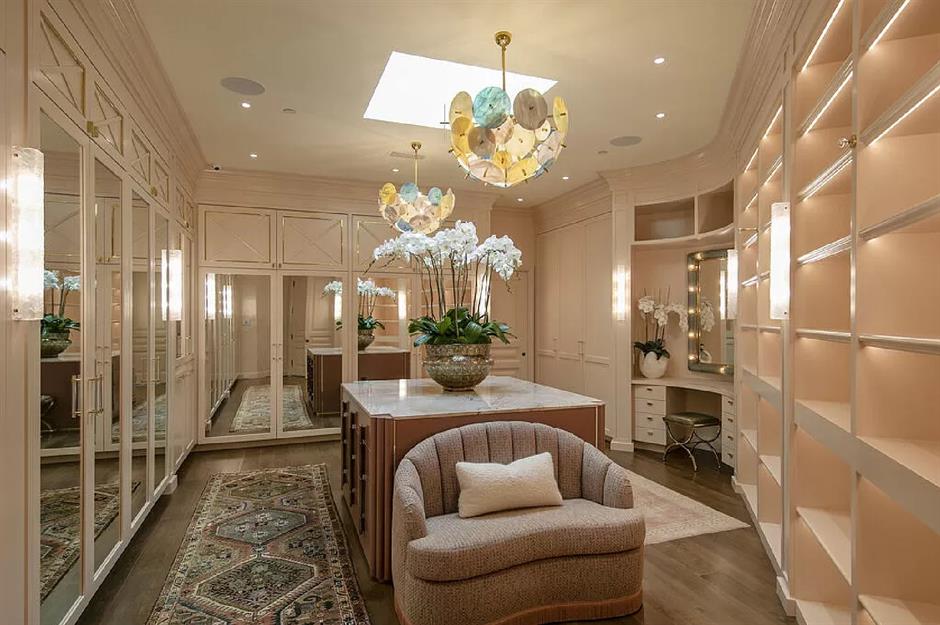 Listeye göre, ana süitte ayrıca "en iyi perakende mağazalarıyla rekabet eden" etkileyici çift giyinme odaları da bulunuyor. Bu görkemli alanda çanta, ayakkabı ve aksesuarları sergilemek için arkadan aydınlatmalı raflar ve Hollywood tarzı aydınlatmalı aynası olan yerleşik bir tuvalet masası bulunuyor ; Tinsletown'ın en iyileri için olmazsa olmaz.