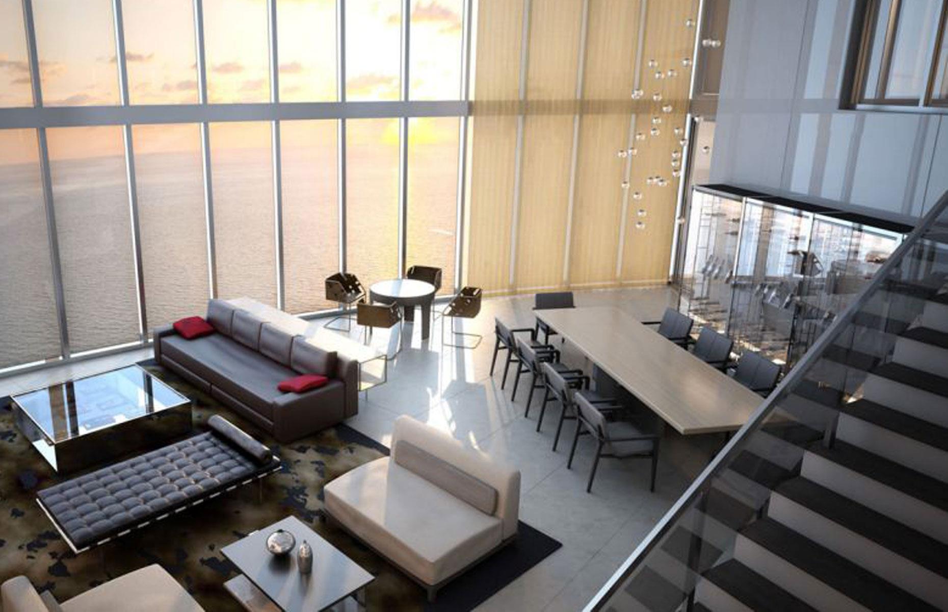 57-60. katları kaplayan 19.403 fit karelik çatı katı dairesi, 132 dairelik binanın en çok arzu edilen dairesi. 11 araçlık gökyüzü garajıyla birlikte, dört katlı daire, nefes kesici manzaraları sergileyen 20 fitlik tavanlara ve tam boy pencerelere sahip iki büyük resepsiyon odasıyla öne çıkıyor.