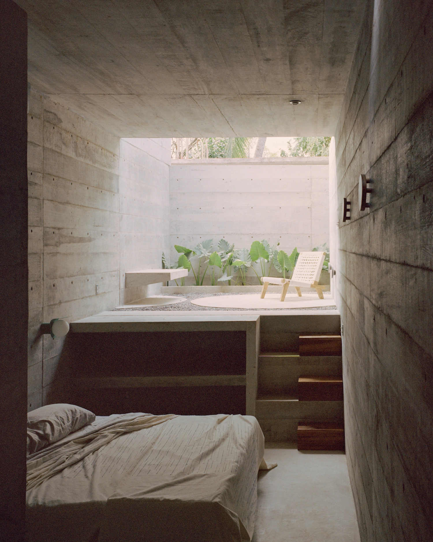 Hornsey Wood Rezervuarı'nın geometrilerine gönderme yaparak antik su mimarisinin sözlüğünden yararlanıyor. Ancak Casa TO, salt bir saygı duruşu değil; biçimsel bir özdeyiş. 600 metrekarelik konut, yalın düzlemler, ritmik sütunlar ve asma, çarkıfelek meyvesi ve muz ağaçlarıyla dolu yemyeşil bir avlu gibi temel hareketlerin bir koreografisi. Burada, mahremiyet ve görünürlük, hem tavan hem de kaçış noktası işlevi gören gökyüzünün kendisi tarafından sağlanıyor.