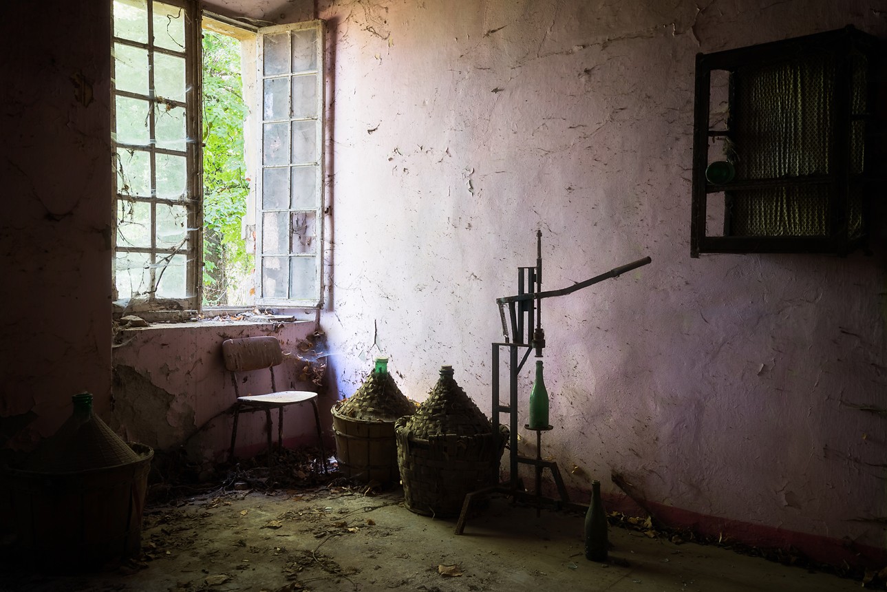 Bu kez yıllık kentsel fotoğraf ziyaretim İtalya ve Toskana'nın kuzeyinde gerçekleşti. Görmek için harika olan alanlar arasındaki manzara ile ilgili büyük bir fark. Fotoğrafladığım binalardan biri, katların çoğunda delikleri olan bu muhteşem terk edilmiş villaydı. Villa son yıllarda bozulmakta ve parçalanmaktadır. Çok uzun bir süre terk edildi ve doğa açıkça yerini geri alıyor. Villa, toplumdan uzakta gizlenmiş yüksek ağaçlar ve bitkilerle çevrilidir, böylece kimse araba kullanırken veya yürürken onu göremez. Onu nerede bulacağını bilmelisin. Ne yazık ki tarihin izlerini ve eskiden yaşayan insanları dinleyemedim. Ben eski sahipleri ya sadece şarap sevdi ya da şarap fıçıları ve şişe şarap için ekipman buldum beri bir iş vardı ikna oldum.