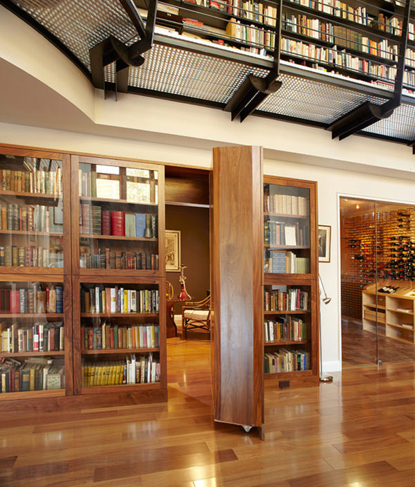 Büyük bir kitaplık, gizli bir odaya harika bir kapı oluşturur. Bu özel kitaplık, ağırlığın iyi desteklendiğinden emin olmak için sağlam menteşelere güvenir.