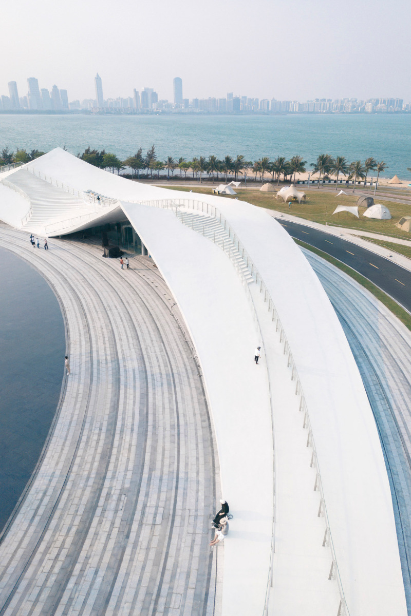 Sou Fujimoto'nun Sky Mountain'ı. Haikou Körfezi'nin kuzey ucundaki bir burunda belirgin bir şekilde konumlanan halka şeklindeki formu kıyı şeridinin eğrisini yansıtıyor.</p>