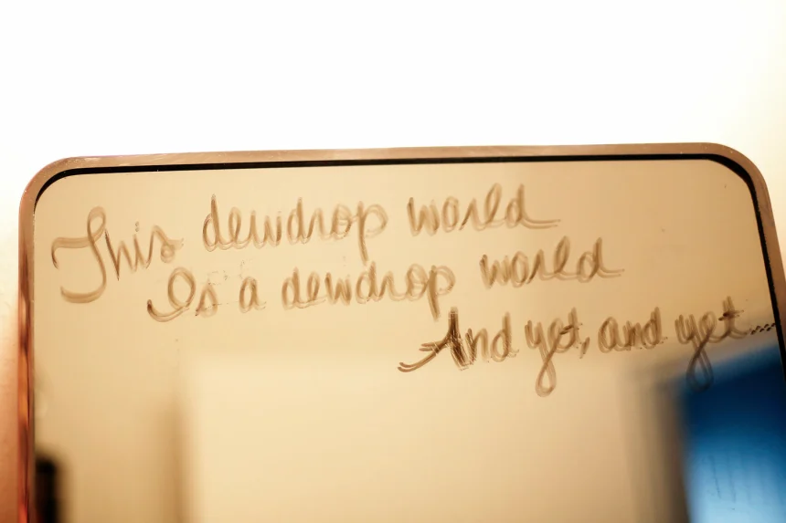 Görüş alanıma güçlendirici mesajlar yerleştirme konusunda çok kasıtlıyım. Masamda bulundurduğum kitaplar, bana ilham veren ve yaptığım şeyi neden yaptığımı hatırlatan kadınlar tarafından yazılmıştır. Banyo aynama kuru silme kalemi ile mesajlar karalamayı seviyorum - ilham verici alıntılar, kelimeler, şiirler. En sonuncusu çok uzun zamandır ayakta. 19. yüzyıl şairi Kobayashi Issa'nın bir haiku'su: "Bu çiy damlası dünyası / Bir çiy damlası dünyası / Ve yine de, ama henüz." Her şeyin geçici doğasına dair bu hatırlatmadan çok şey kazandım. İç karartıcı bir şekilde değil, ilham verici bir şekilde. Evlerimiz - hayatımızdaki her şey gibi - güzel ve geçicidir. Onlardan keyif almak bizim görevimiz.