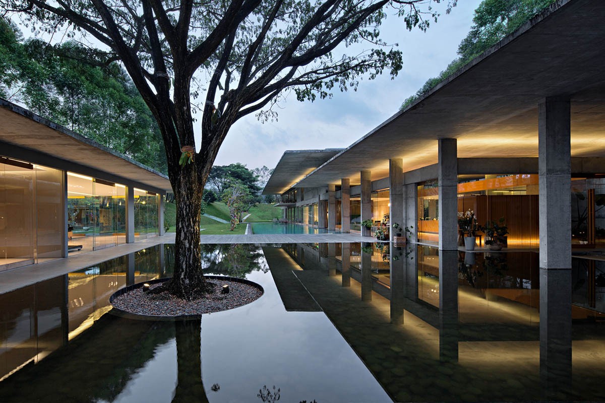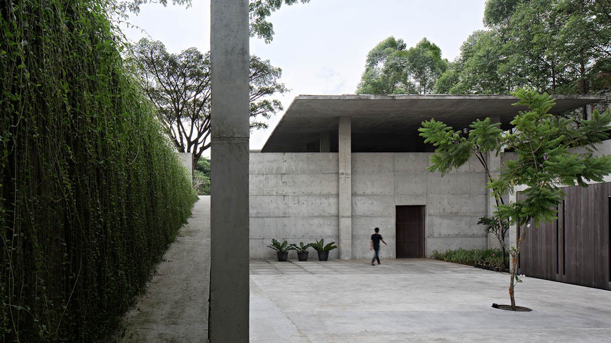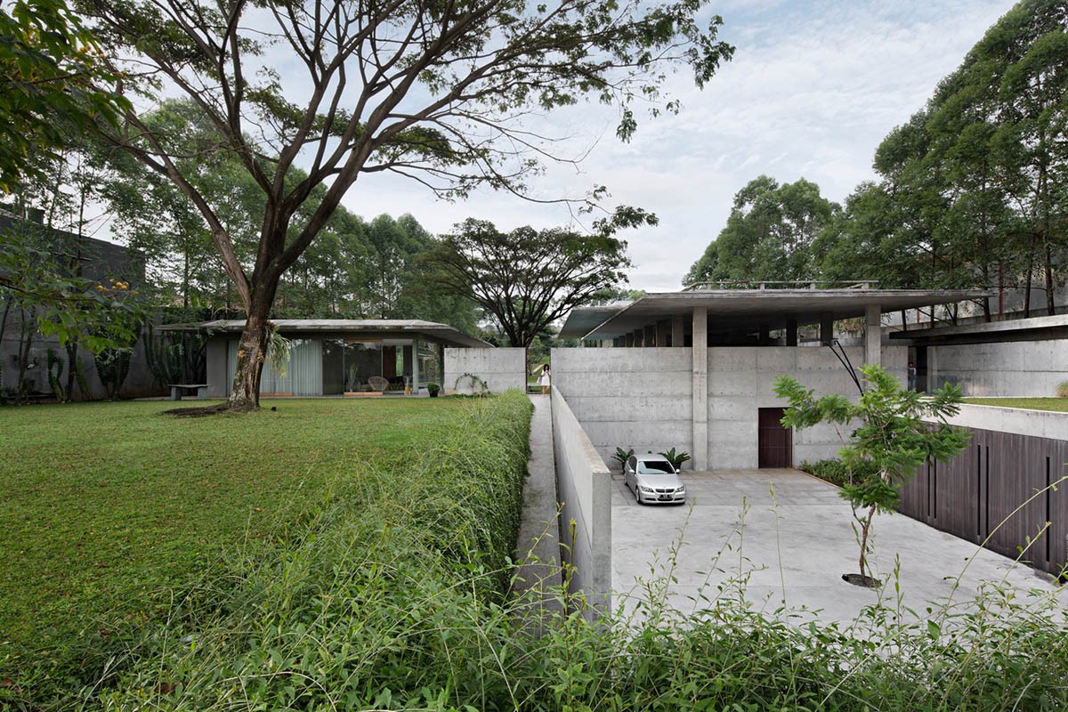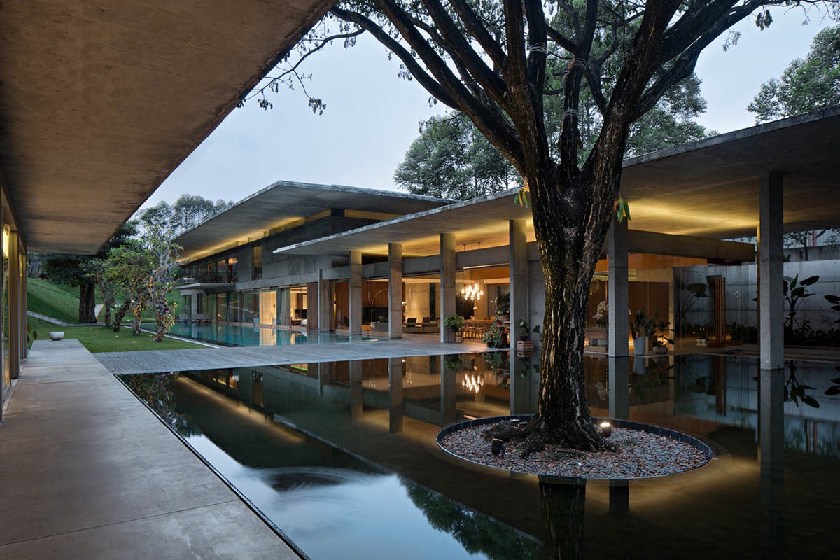 Endonezya mimarlık stüdyosu andramatin , bir aile konutu için Bandung'un Endonezya'daki serin ve canlı iklimine uyum sağlamak için 6 metrelik bir saçak tasarladı .